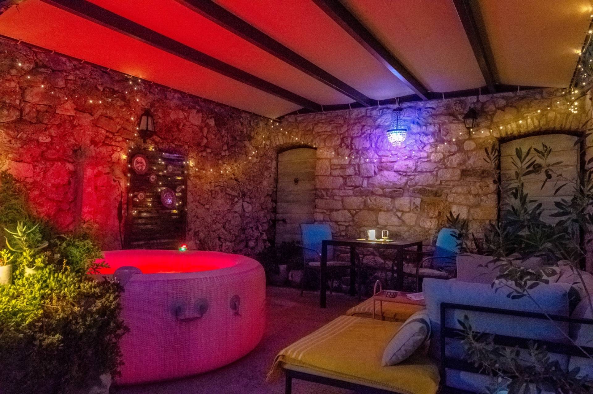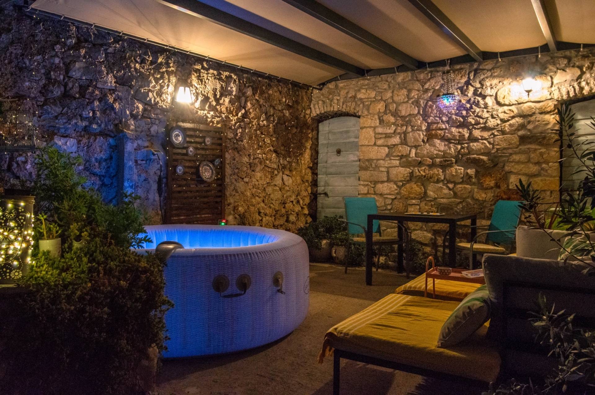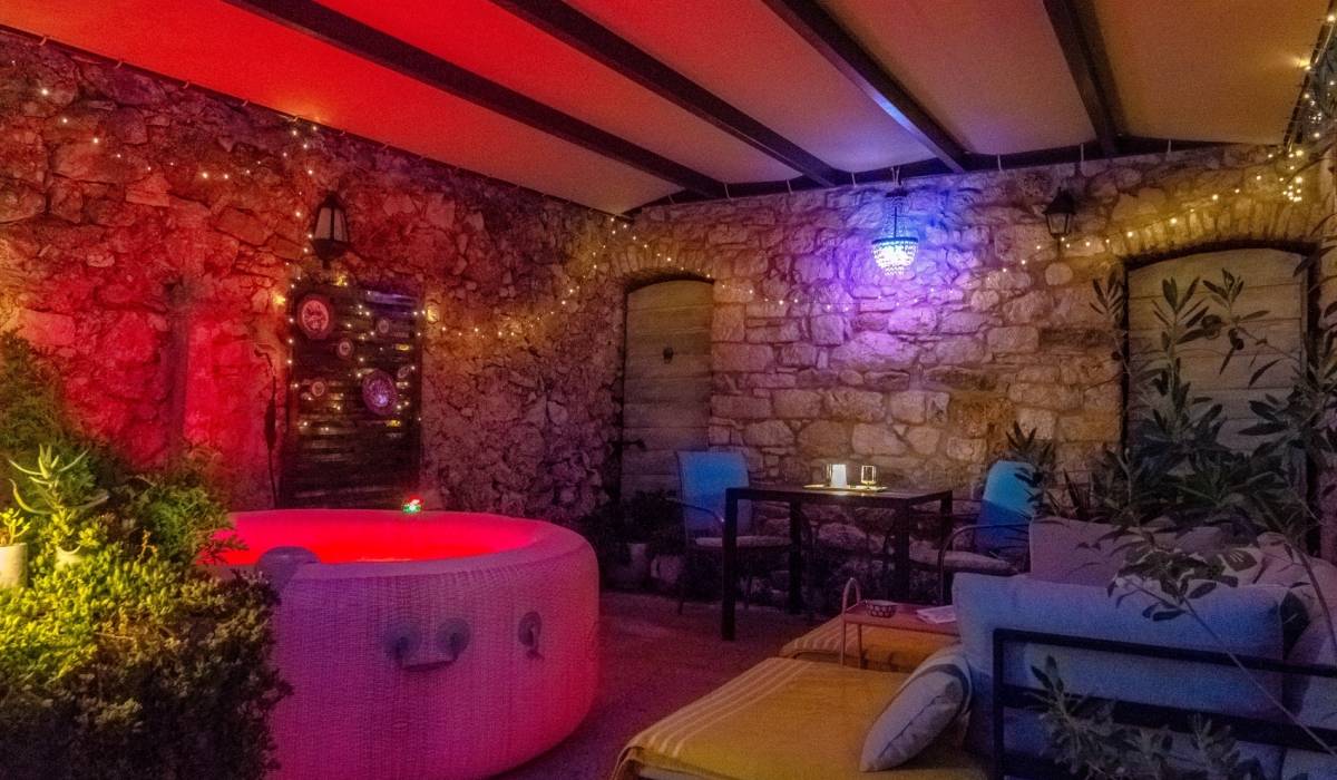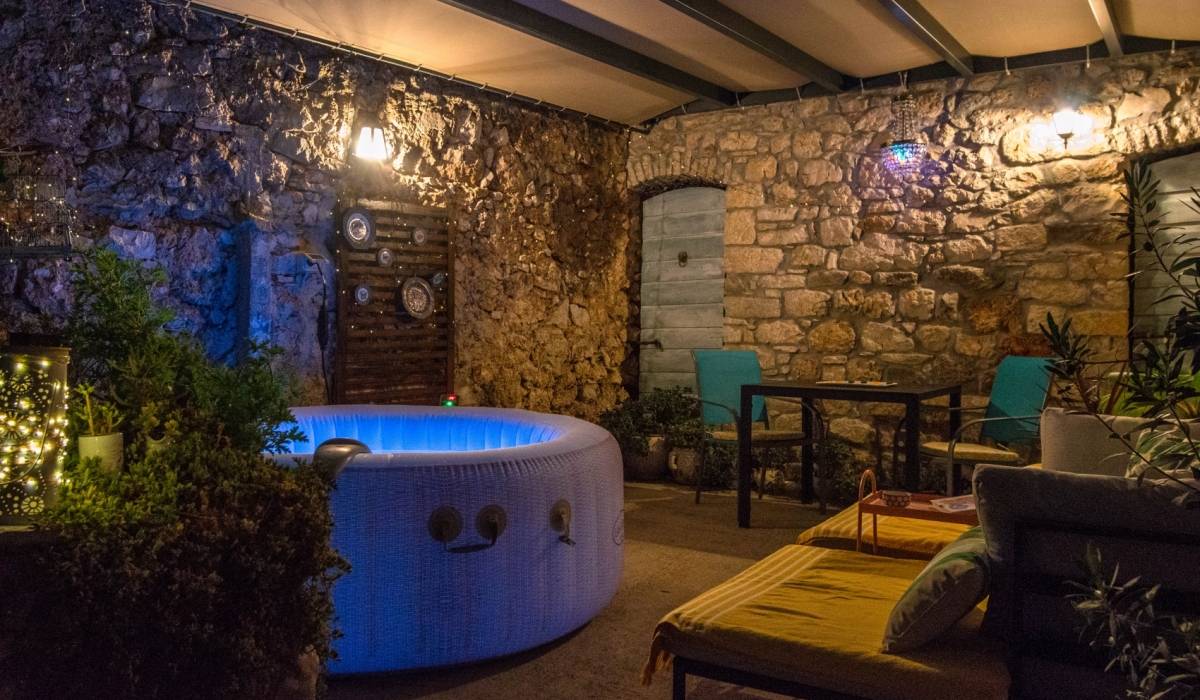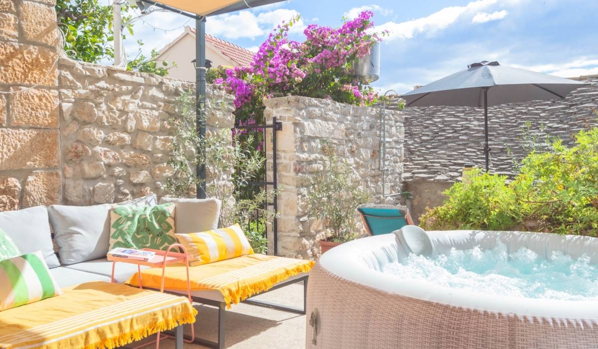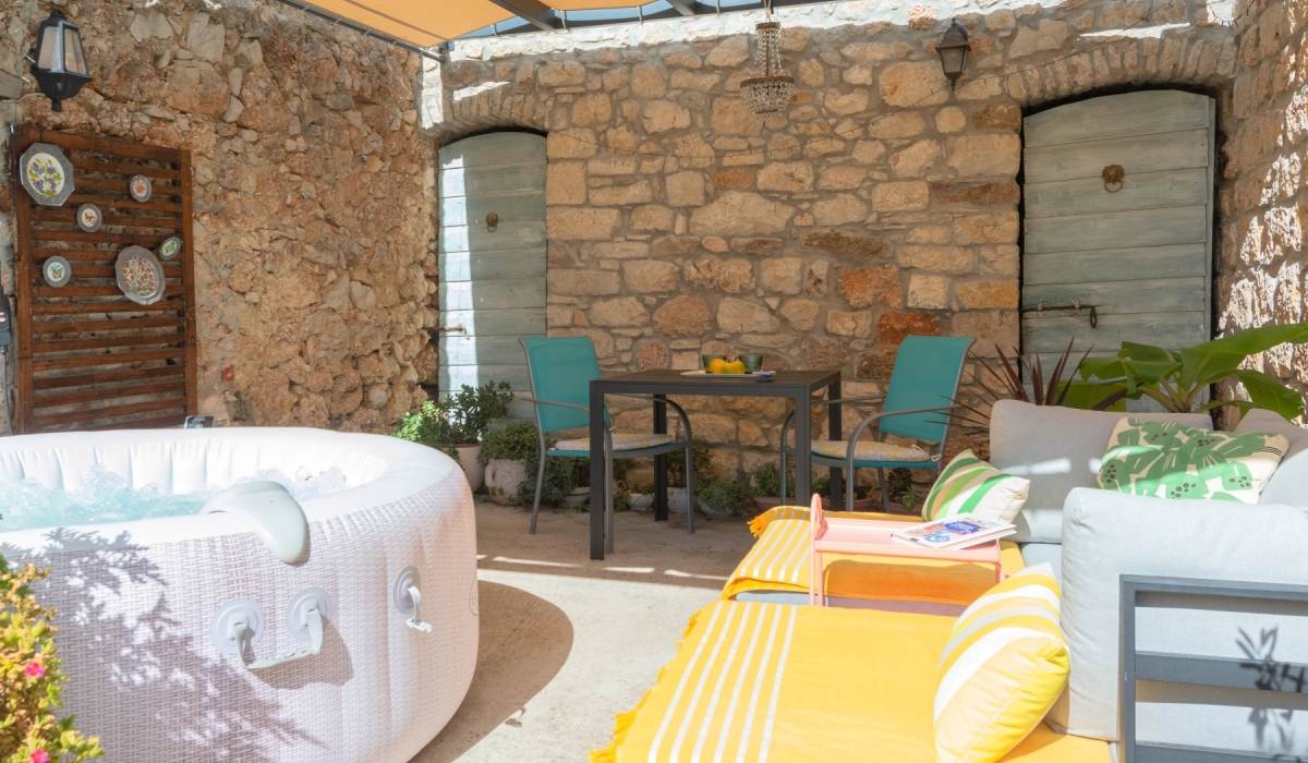 Enjoy the tranquility of the secluded garden, lemon tree, and private outdoor space, making it the perfect getaway to unwind and connect with nature. Apartment is on the ground floor with its own patio garden featuring a jacuzzi, solar shower, lounge beds and two dining areas. A peaceful oasis perfect for couples seeking relaxation in the heart of Bol.